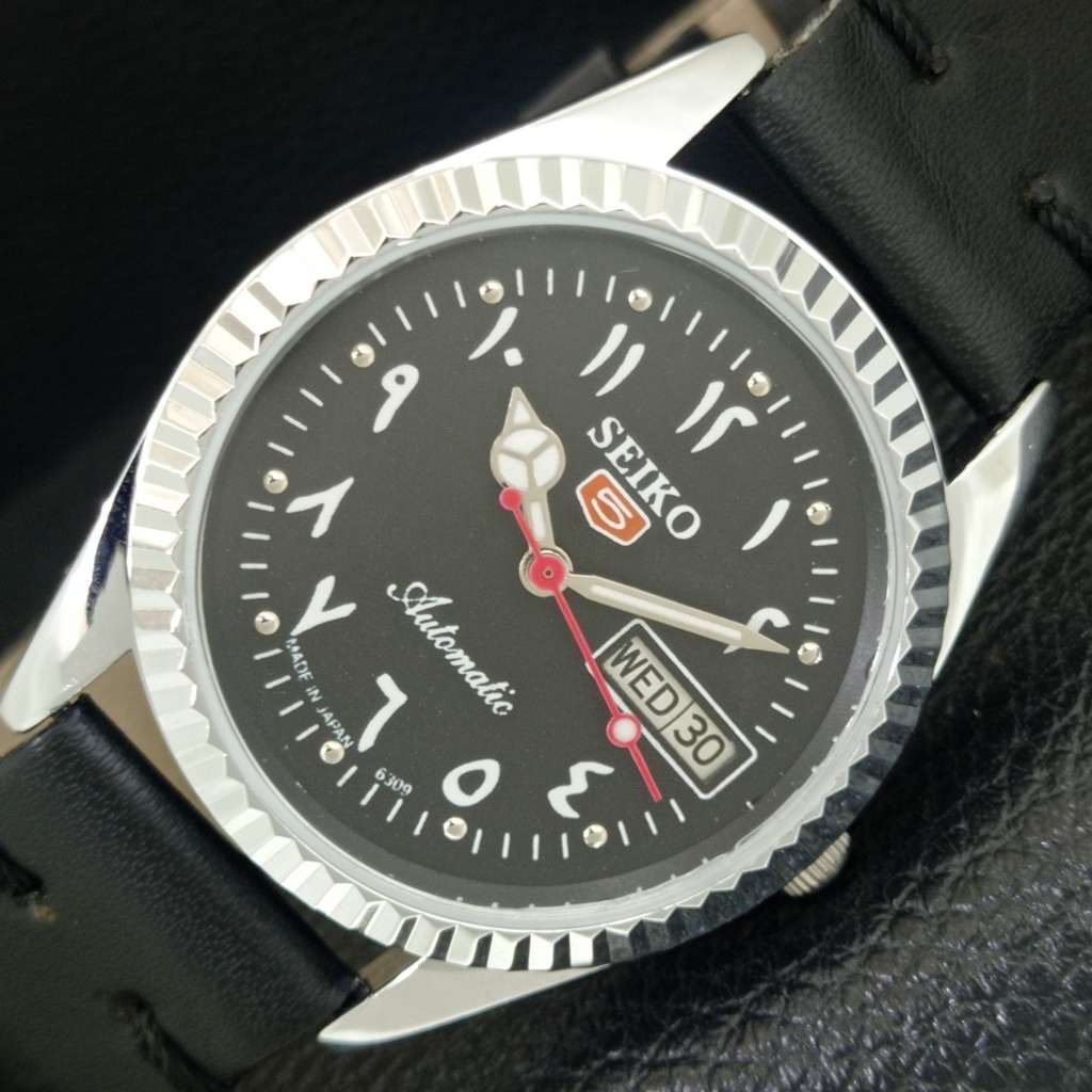 JAPAN VINTAGE REFURBISHED SEIKO 5 AUTOMATIC 6309A MENS BLACK WATCH a442508-1