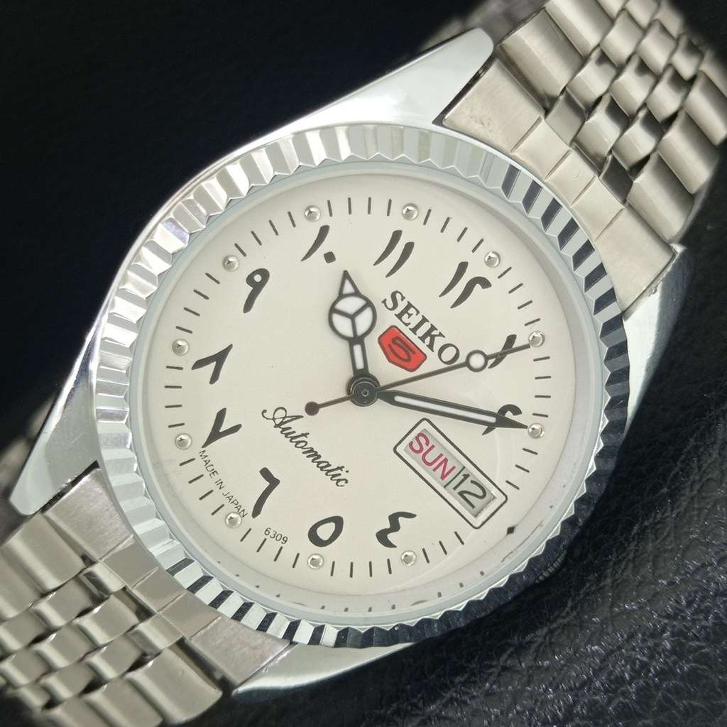 JAPAN VINTAGE REFURBISHED SEIKO 5 AUTOMATIC 6309A MENS WHITE WATCH a442466-7
