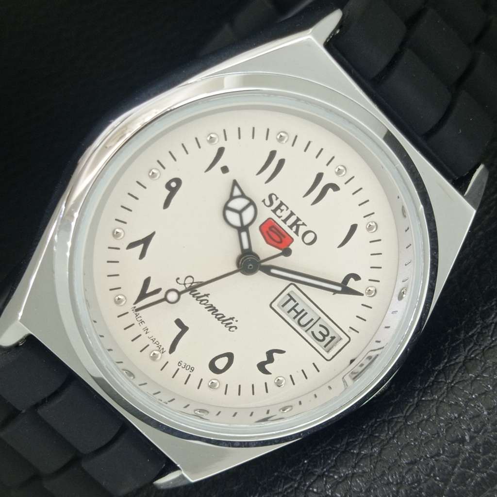 JAPAN VINTAGE REFURBISHED SEIKO 5 AUTOMATIC 6309A MENS WHITE WATCH a442619-1