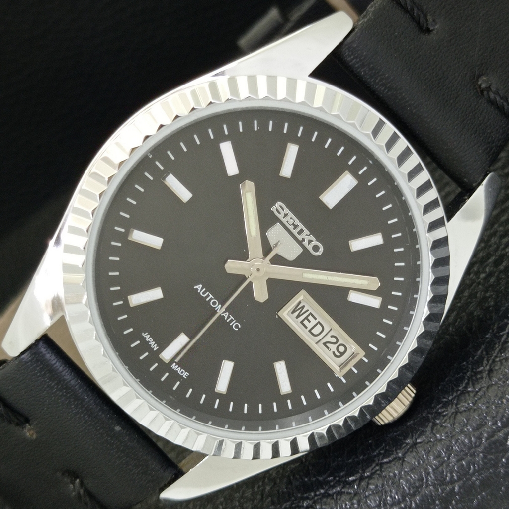 JAPAN VINTAGE REFURBISHED SEIKO 5 AUTOMATIC MENS BLACK DIAL WATCH a440556-1