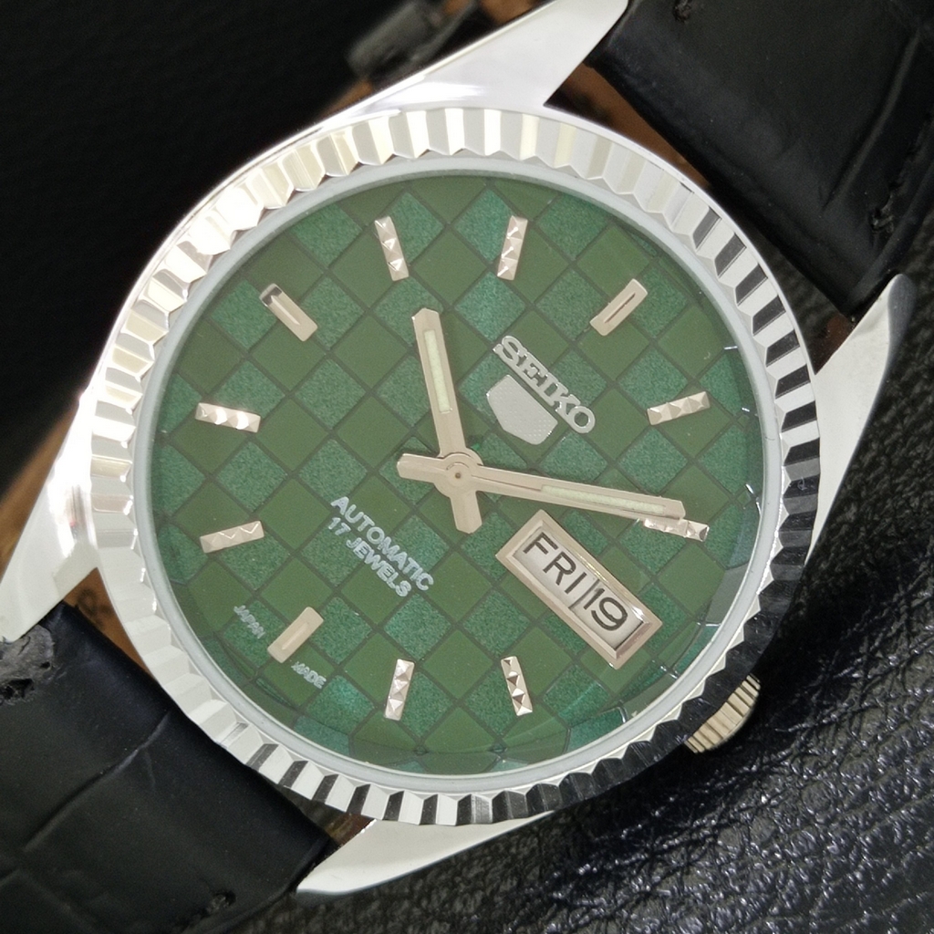 JAPAN VINTAGE REFURBISHED SEIKO 5 AUTOMATIC MENS GREEN DIAL WATCH a440390-1