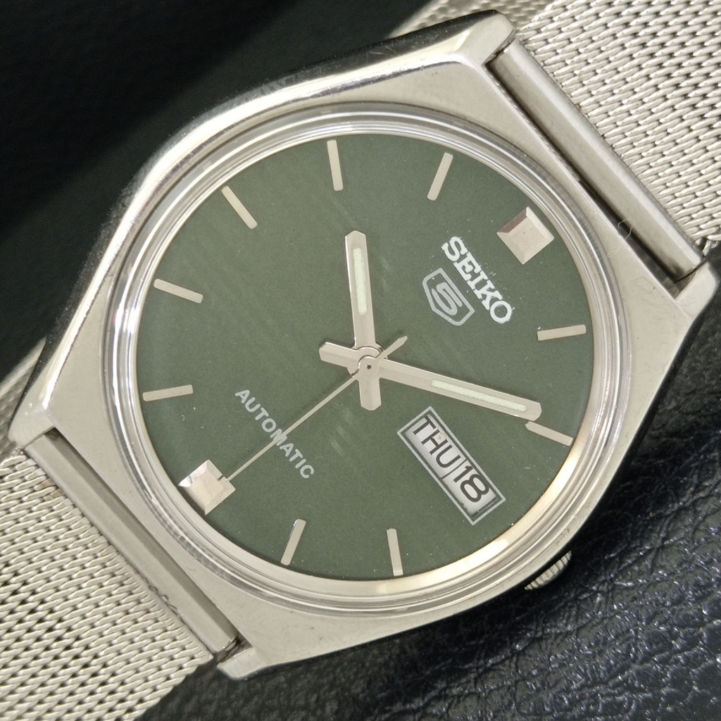 JAPAN VINTAGE SEIKO 5 AUTOMATIC 6309A MENS GREEN COLOR DIAL WATCH a500802-1