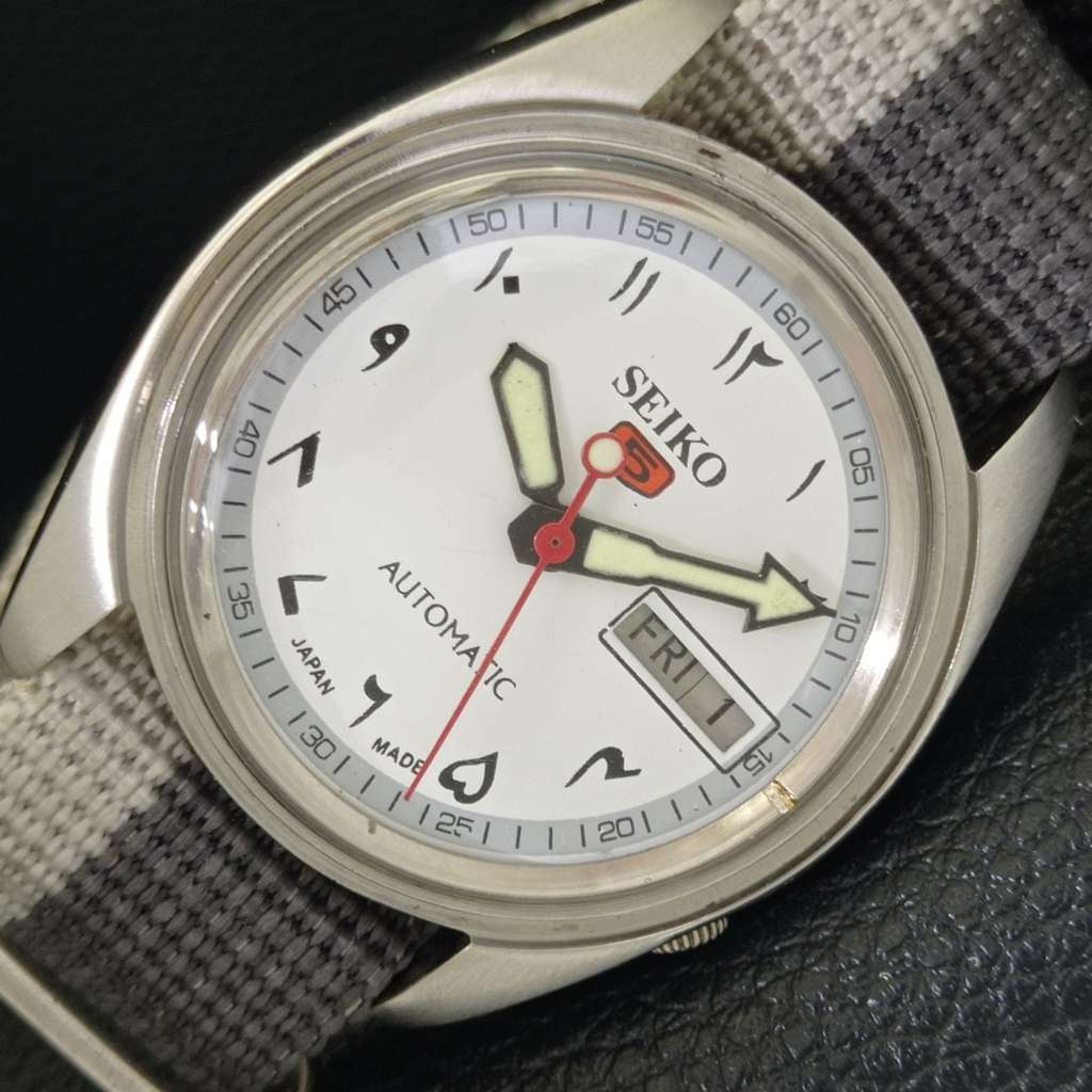 JAPAN VINTAGE SEIKO 5 AUTOMATIC 7009A MENS ARABIC WHITE DIAL WATCH a702457-1