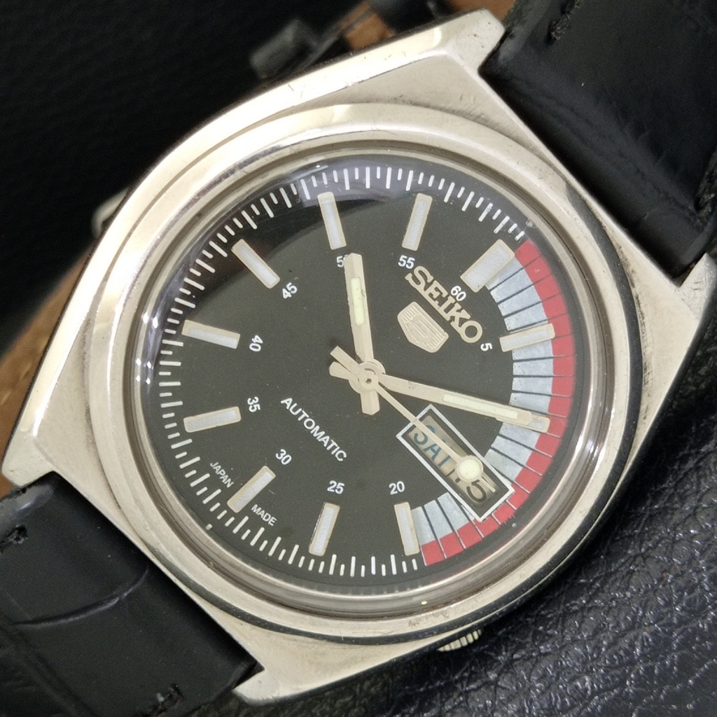 JAPAN VINTAGE SEIKO 5 AUTOMATIC 7009A MENS BLACK COLOR DIAL WATCH a500773-1