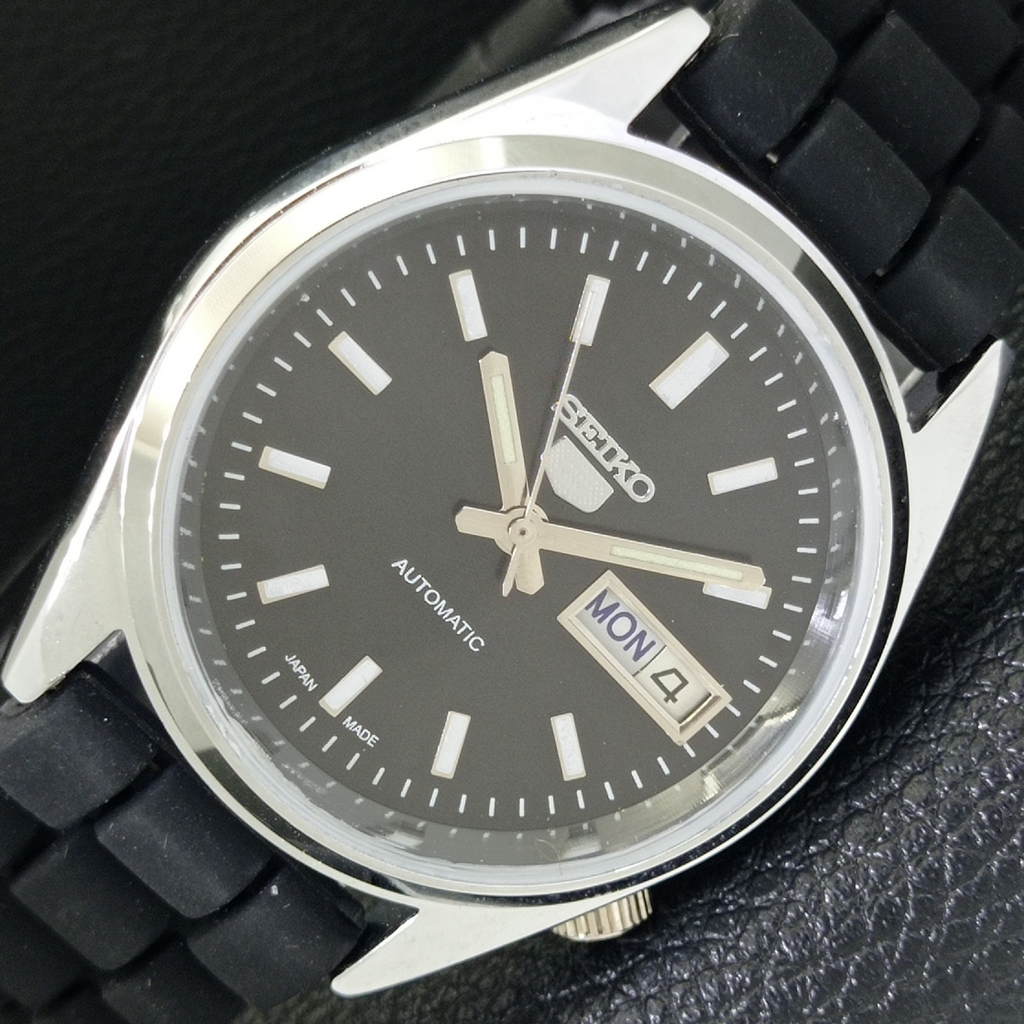 JAPAN VINTAGE SEIKO 5 AUTOMATIC REFURBISHED MENS BLACK DIAL WATCH a440534-1