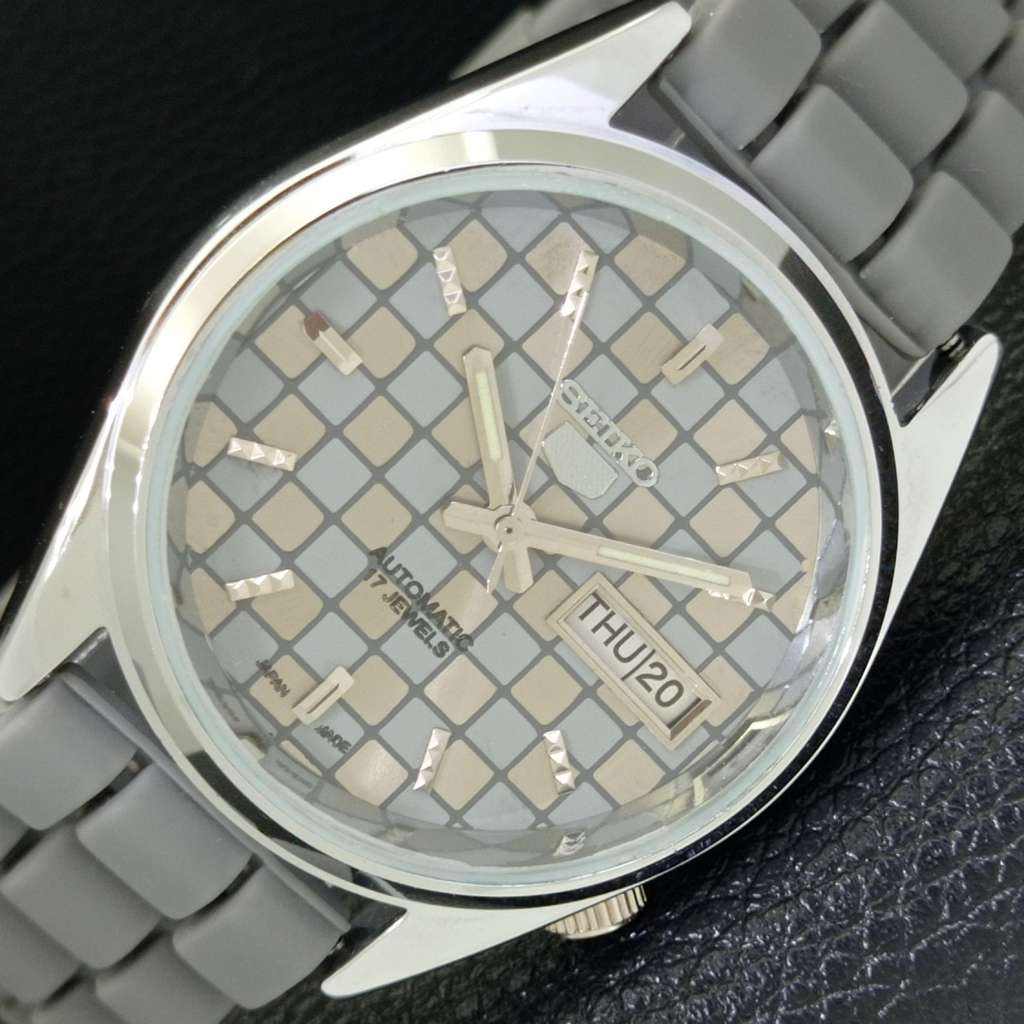 JAPAN VINTAGE SEIKO 5 AUTOMATIC REFURBISHED MENS GREY COLOR DIAL WATCH a440432-4