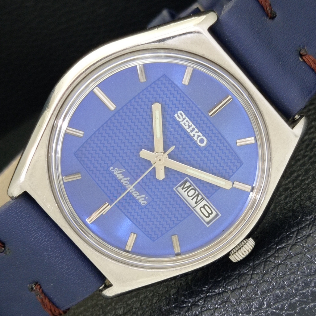 JAPAN VINTAGE SEIKO AUTOMATIC 6309A MENS BLUE COLOR DIAL WATCH a500825-1