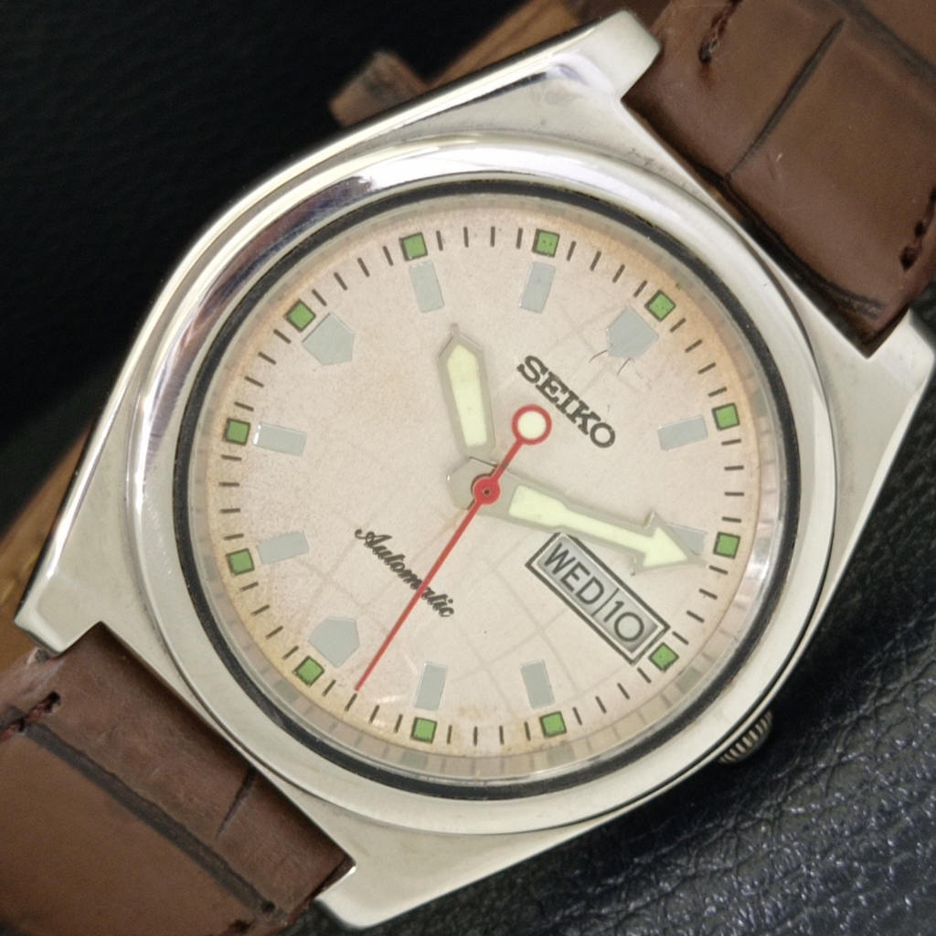 JAPAN VINTAGE SEIKO AUTOMATIC 6309A MENS SILVER COLOR DIAL WATCH a700473-1