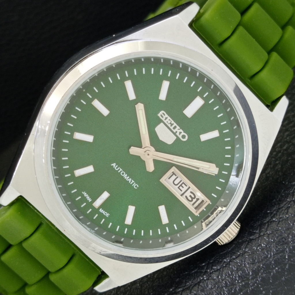 MENS VINTAGE REFURBISHED SEIKO 5 AUTOMATIC JAPAN GREEN DIAL WATCH a440661-1