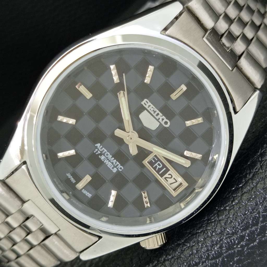 MENS VINTAGE SEIKO 5 AUTOMATIC REFURBISHED JAPAN BLACK DIAL WATCH a440436-a