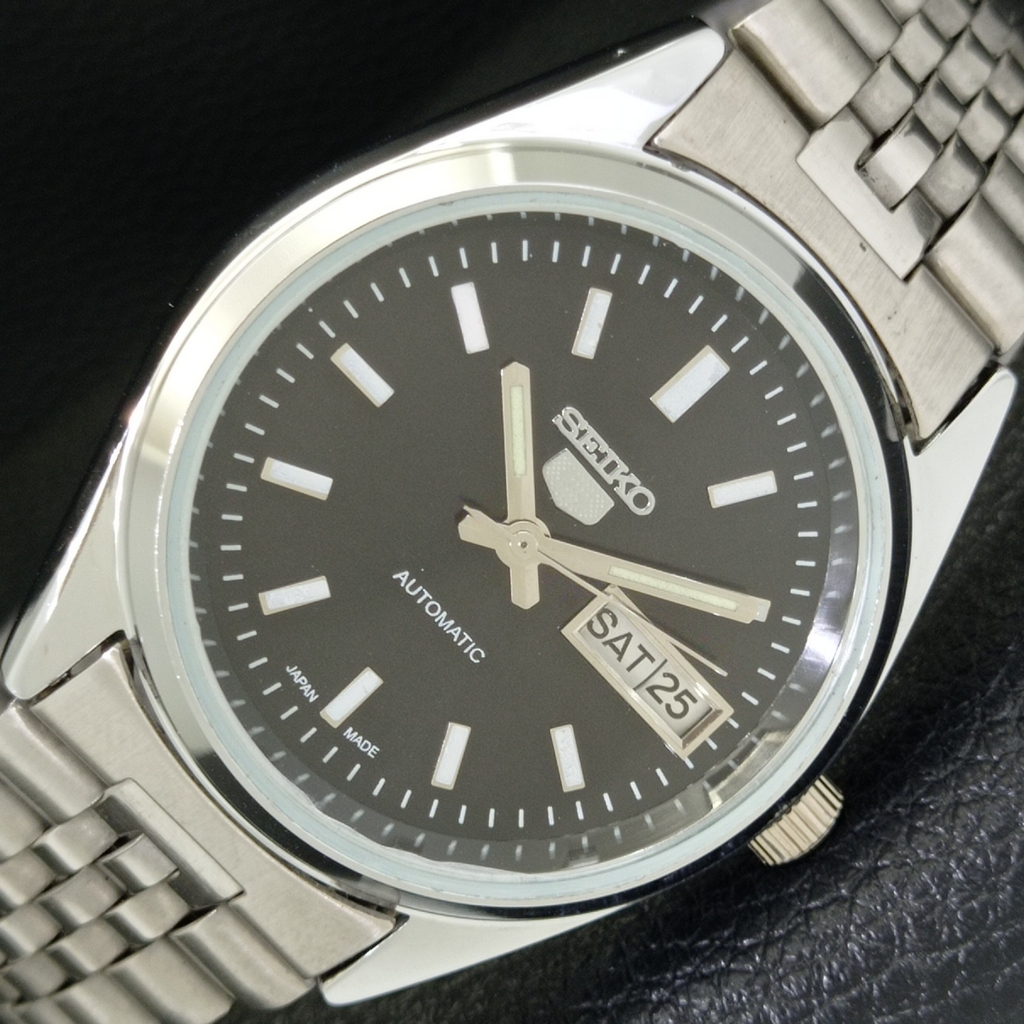 MENS VINTAGE SEIKO 5 AUTOMATIC REFURBISHED JAPAN BLACK DIAL WATCH a440618-6