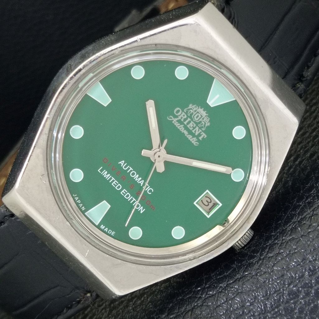 ORIENT AUTOMATIC 46943 VINTAGE JAPAN MENS GREEN COLOR DIAL WATCH a701829-1