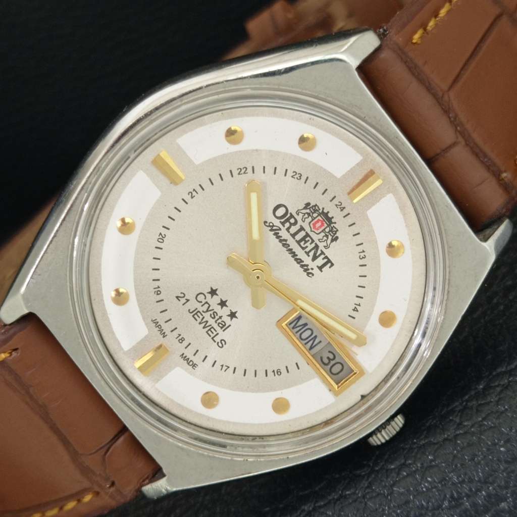 ORIENT CRYSTAL 46941 AUTOMATIC VINTAGE JAPAN MENS SILVER DIAL WATCH a706897-1
