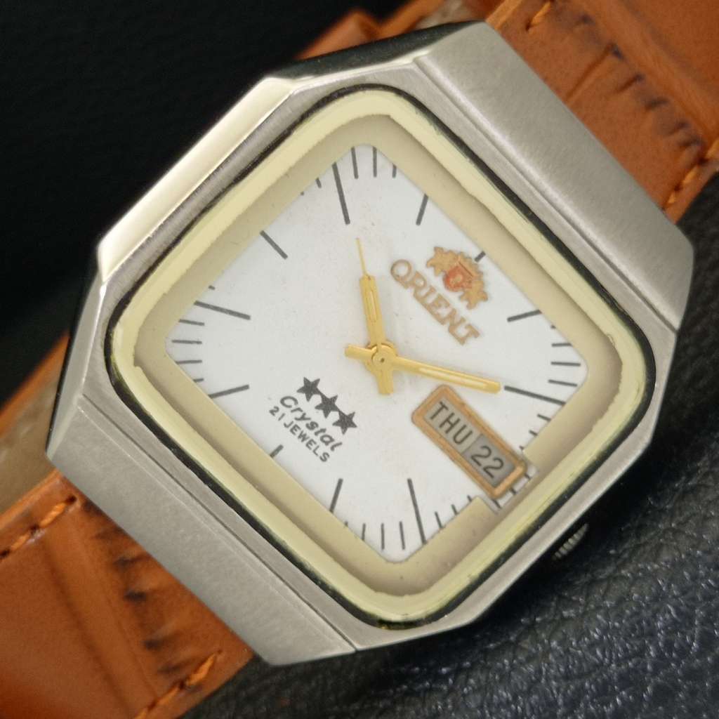 ORIENT CRYSTAL AUTOMATIC 46941 JAPAN MENS VINTAGE WHITE DIAL WATCH a703589-1