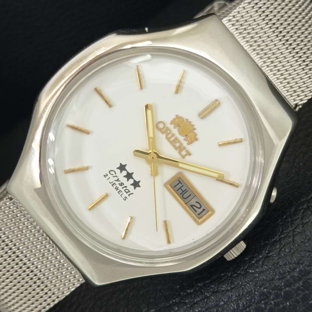 ORIENT CRYSTAL AUTOMATIC 46941 VINTAGE JAPAN MENS WHITE DIAL WATCH a704879-1