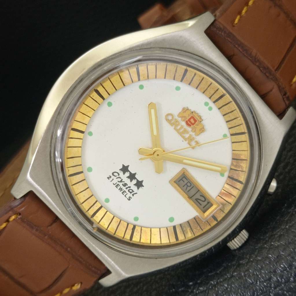 ORIENT CRYSTAL AUTOMATIC JAPAN 46941 MENS VINTAGE WHITE DIAL WATCH a703322-1