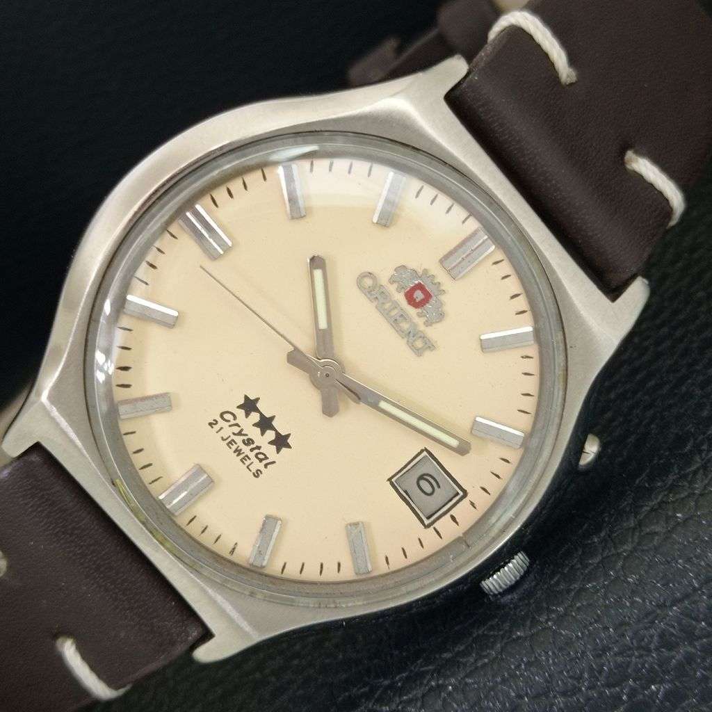 ORIENT CRYSTAL AUTOMATIC VINTAGE JAPAN 46941 MENS CREAM DIAL WATCH a704805-1