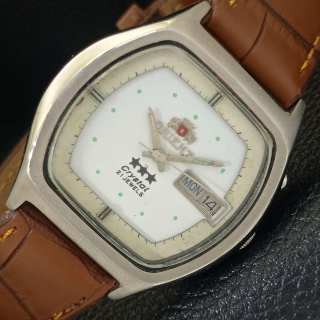 ORIENT CRYSTAL AUTOMATIC VINTAGE JAPAN 46941 MENS WHITE DIAL WATCH a703307-1