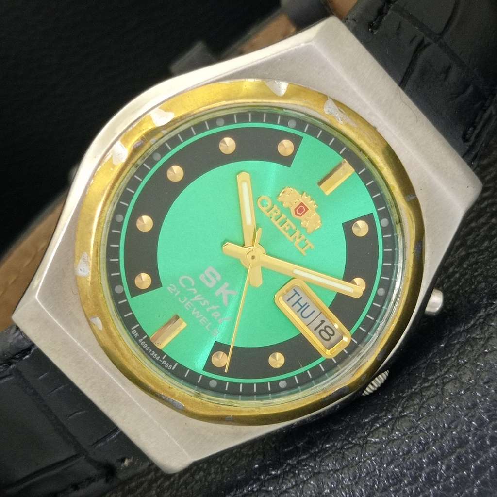 ORIENT SK CRYSTAL AUTOMATIC 46941 VINTAGE JAPAN MENS GREEN DIAL WATCH a703415-1