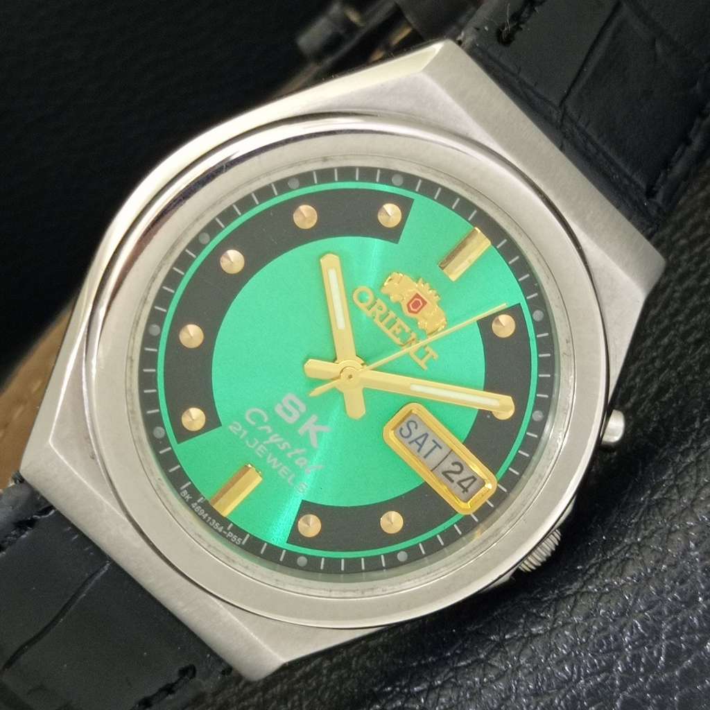 ORIENT SK CRYSTAL AUTOMATIC 46941 VINTAGE JAPAN MENS GREEN DIAL WATCH a703588-1