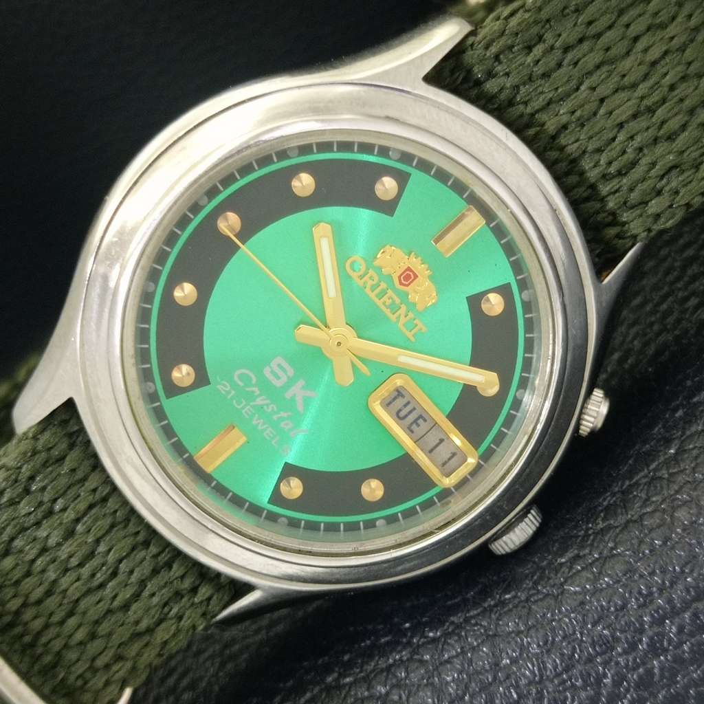 ORIENT SK CRYSTAL AUTOMATIC 46943 JAPAN MENS VINTAGE GREEN DIAL WATCH a703416-1