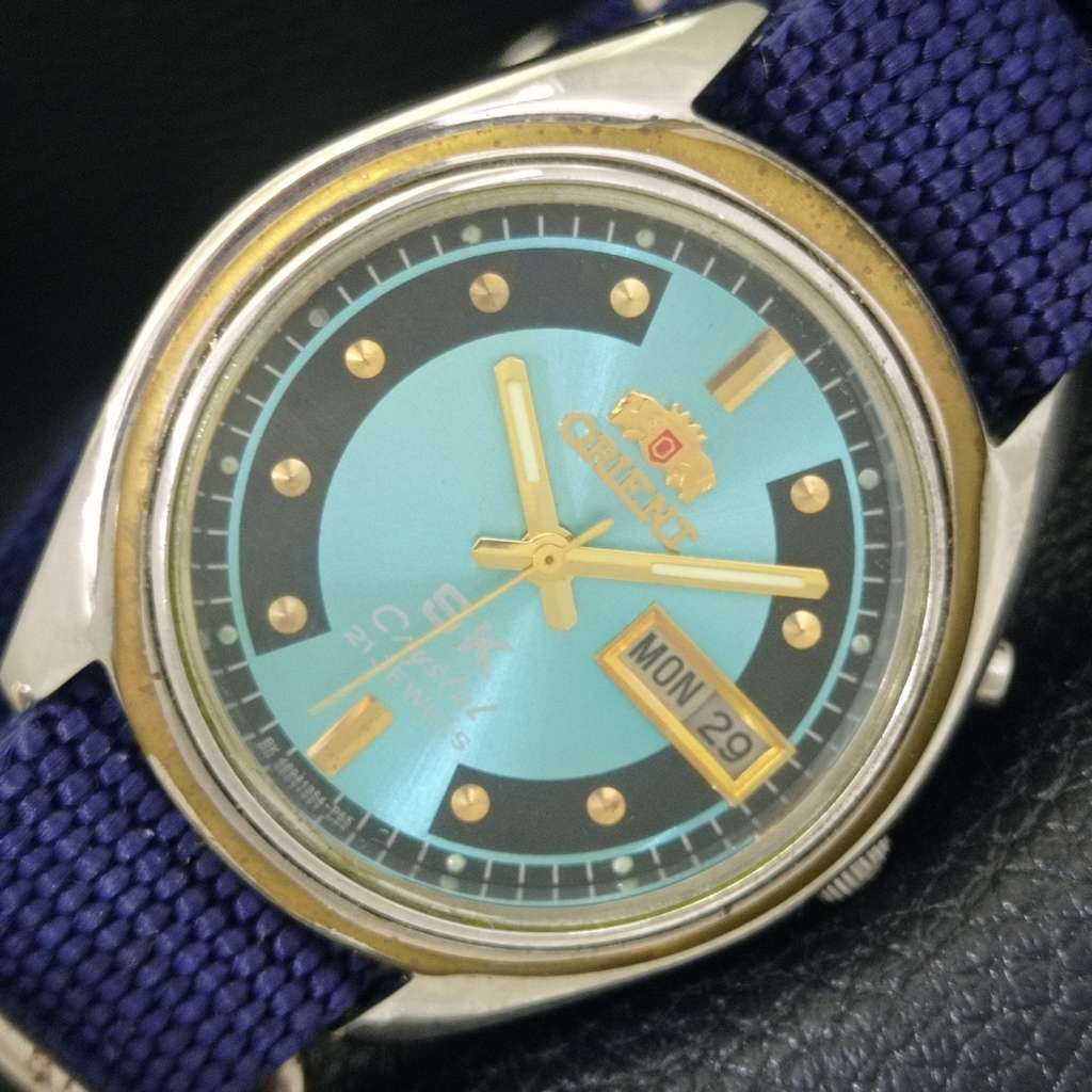 ORIENT SK CRYSTAL AUTOMATIC JAPAN MENS VINTAGE SKY BLUE DIAL WATCH a703424-1