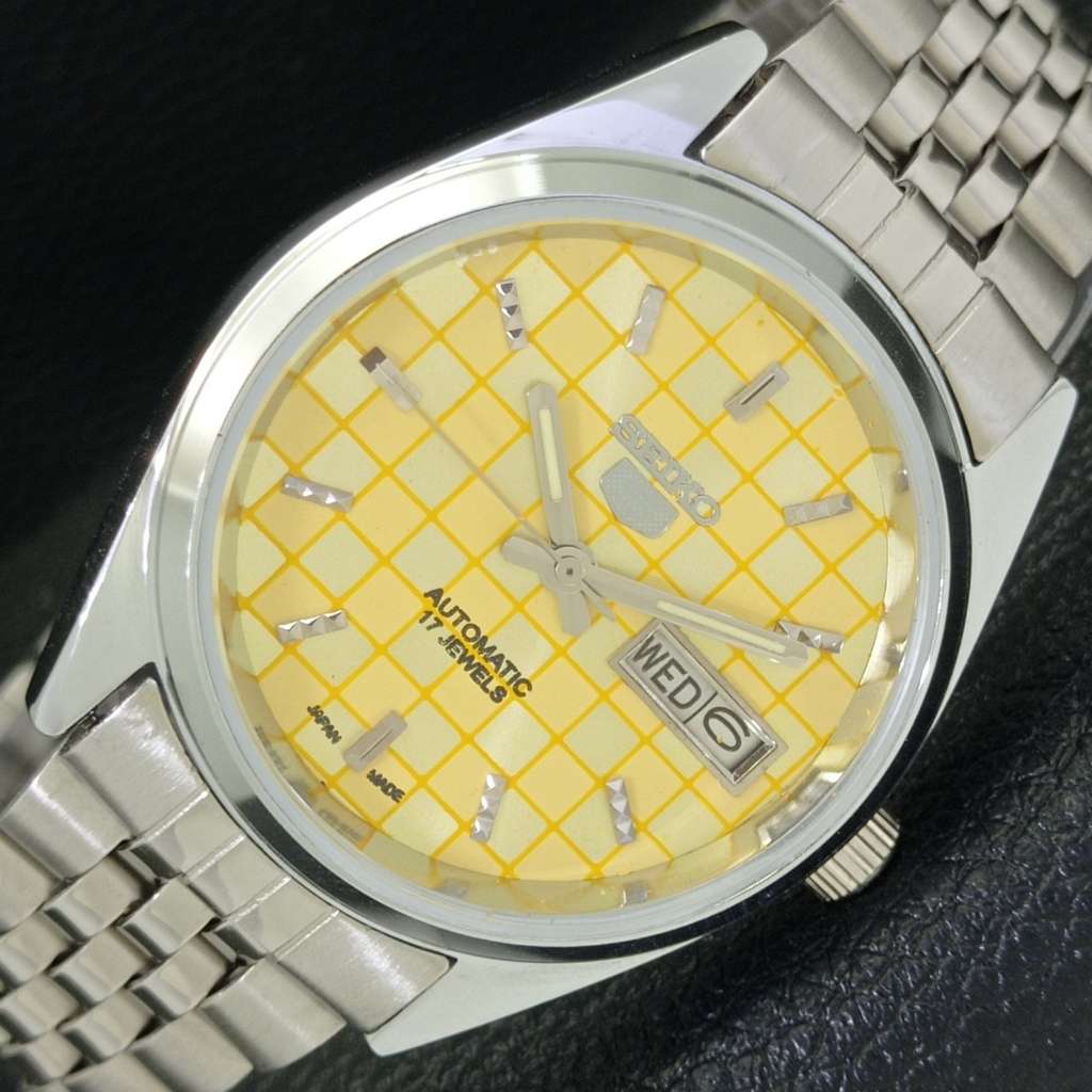 REFURBISHED JAPAN SEIKO 5 6309A AUTOMATIC MENS YELLOW COLOR DIAL WATCH a440262-d