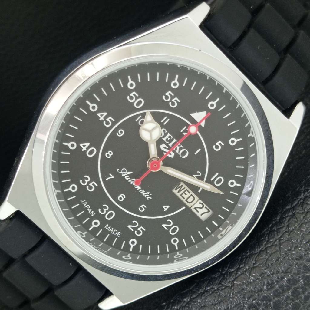 REFURBISHED SEIKO 5 AUTOMATIC 6309A JAPAN MENS VINTAGE BLACK WATCH a442195-1