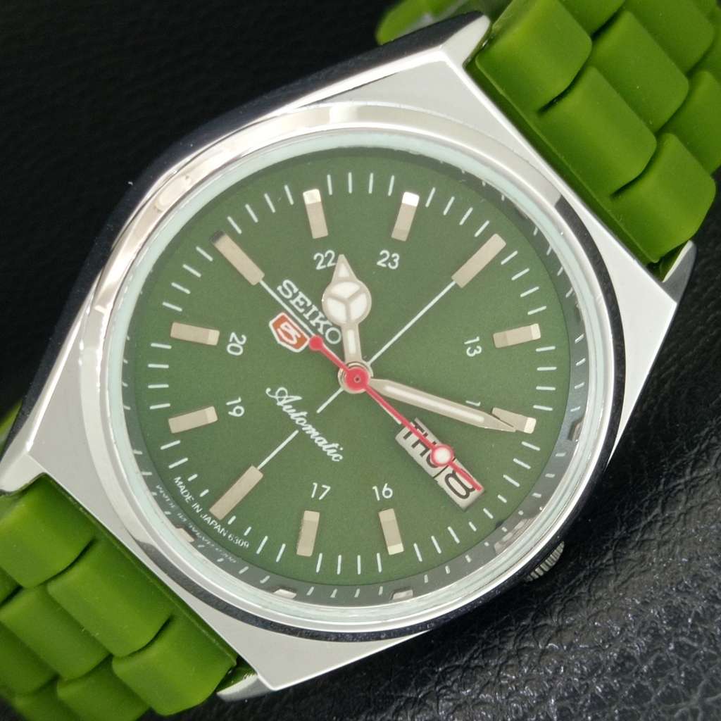 REFURBISHED SEIKO 5 AUTOMATIC 6309A JAPAN MENS VINTAGE GREEN WATCH a442874-1