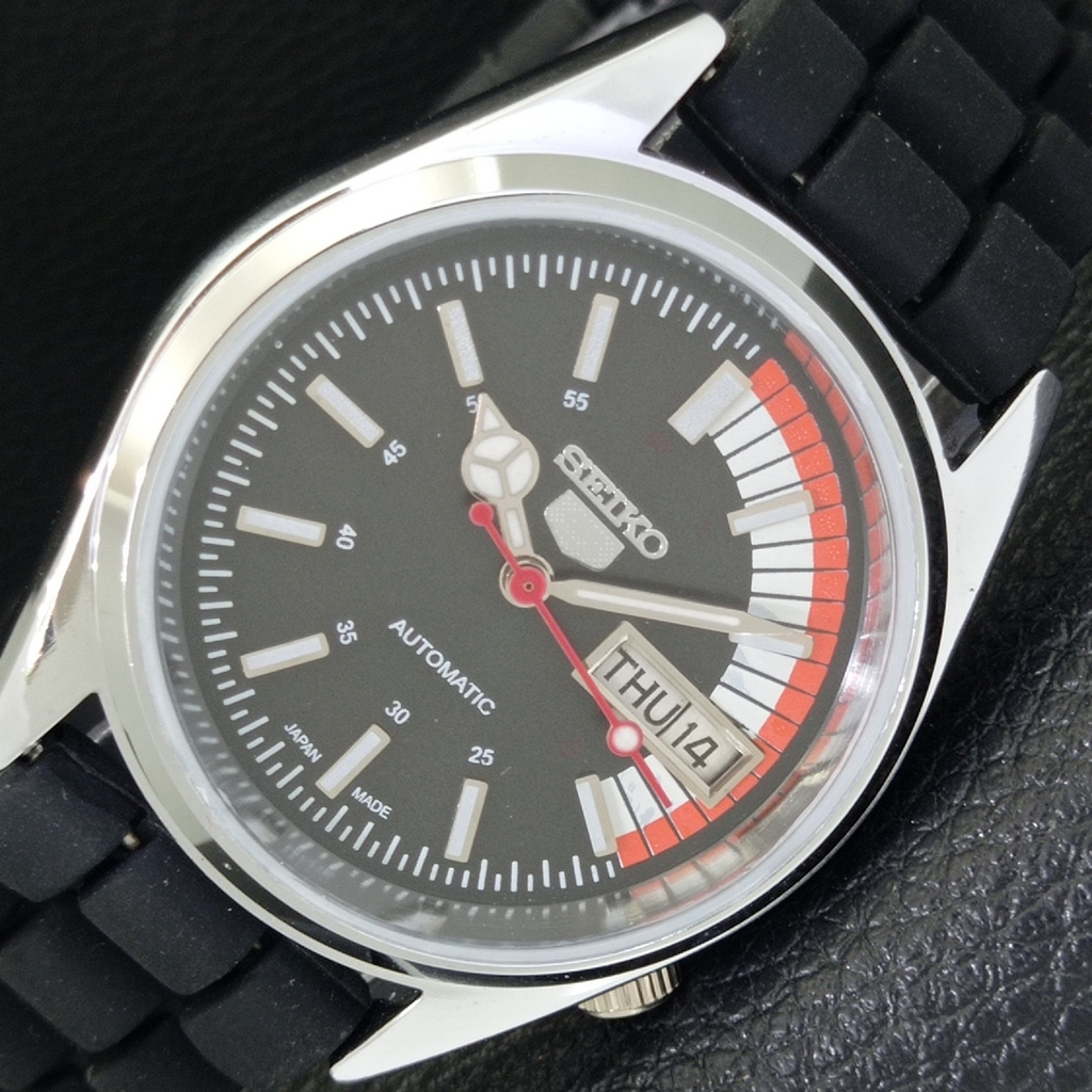 REFURBISHED SEIKO 5 AUTOMATIC 6309A VINTAGE JAPAN MENS BLACK WATCH a441131-1