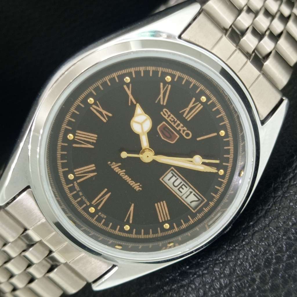 REFURBISHED SEIKO 5 AUTOMATIC 6309A VINTAGE JAPAN MENS BLACK WATCH a442125-1