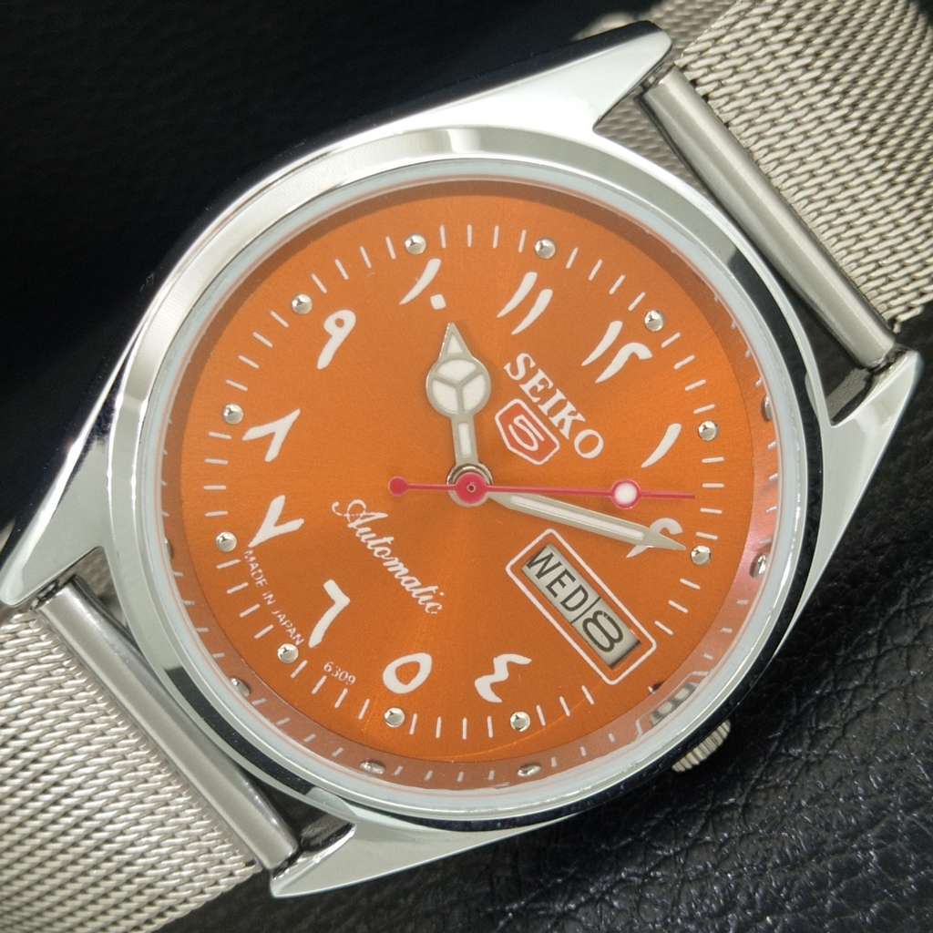 REFURBISHED SEIKO 5 AUTOMATIC 6309A VINTAGE JAPAN MENS ORANGE WATCH a442451-1