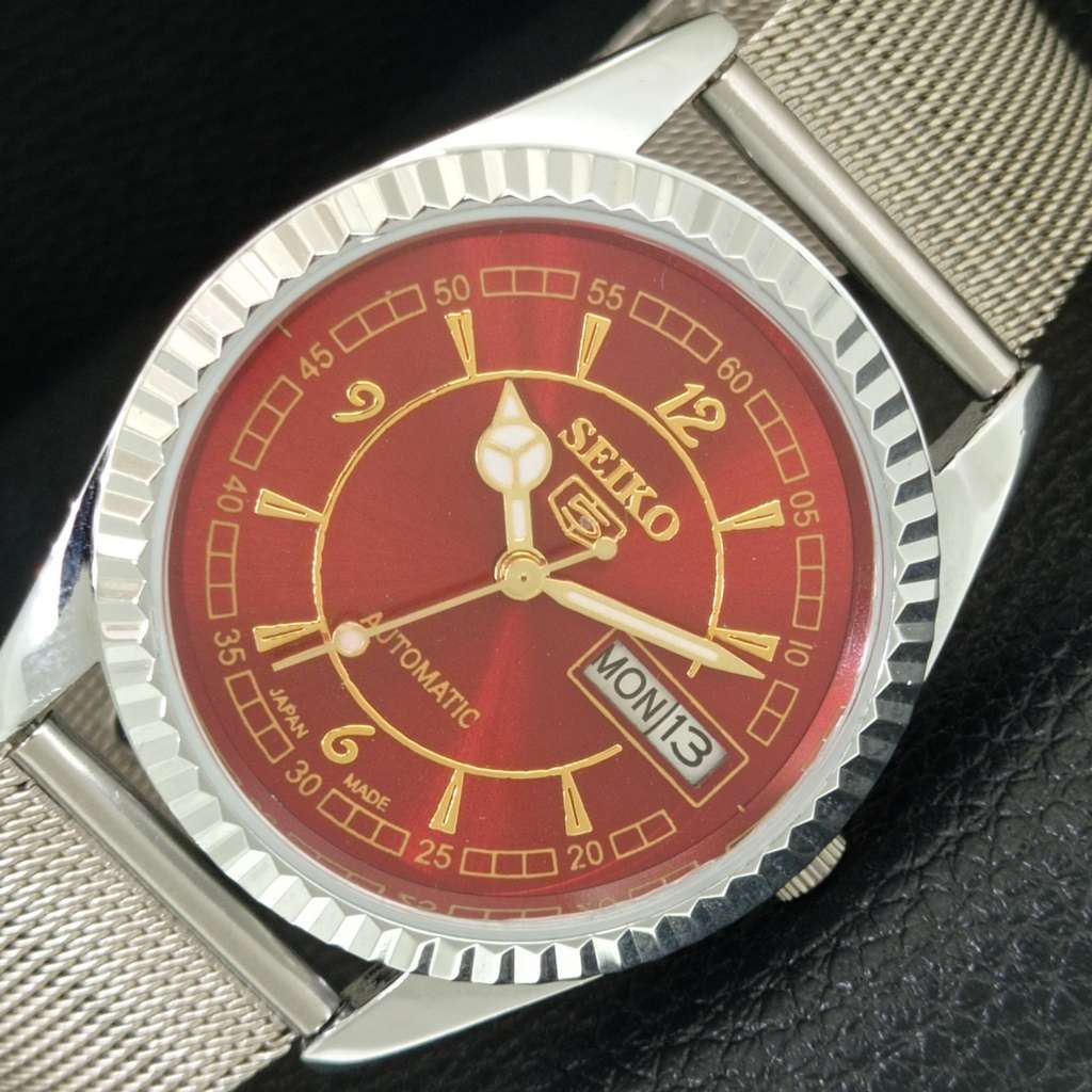 REFURBISHED SEIKO 5 AUTOMATIC 6309A VINTAGE JAPAN MENS RED DIAL WATCH a443277-1