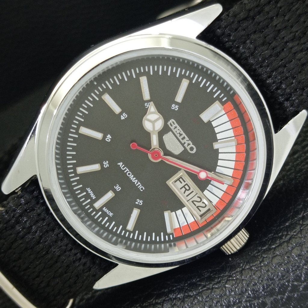 REFURBISHED VINTAGE SEIKO 5 AUTOMATIC 6309A JAPAN MENS BLACK WATCH a440748-1