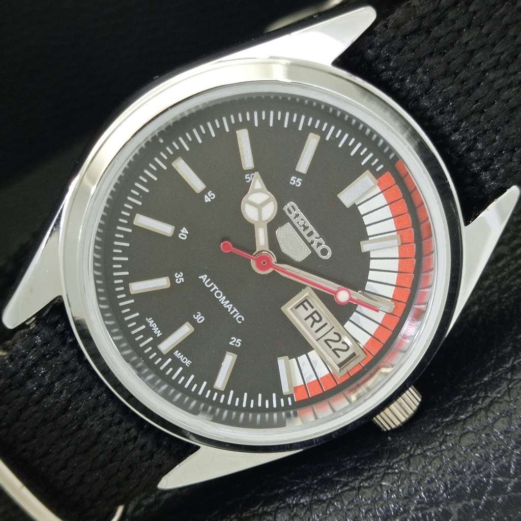 REFURBISHED VINTAGE SEIKO 5 AUTOMATIC 6309A JAPAN MENS BLACK WATCH a440868-g