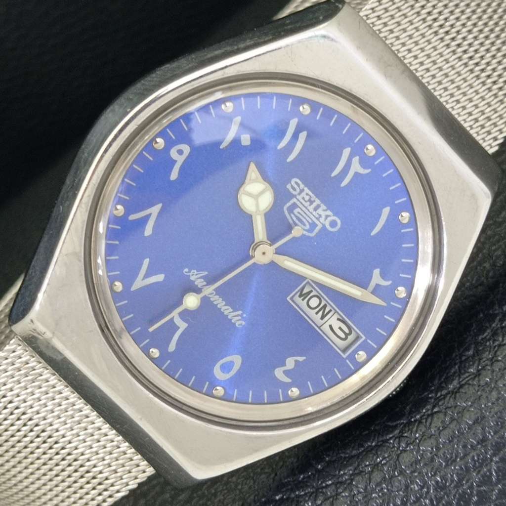 SEIKO 5 AUTOMATIC 6309A JAPAN MENS VINTAGE ARABIC BLUE DIAL WATCH a702662-1