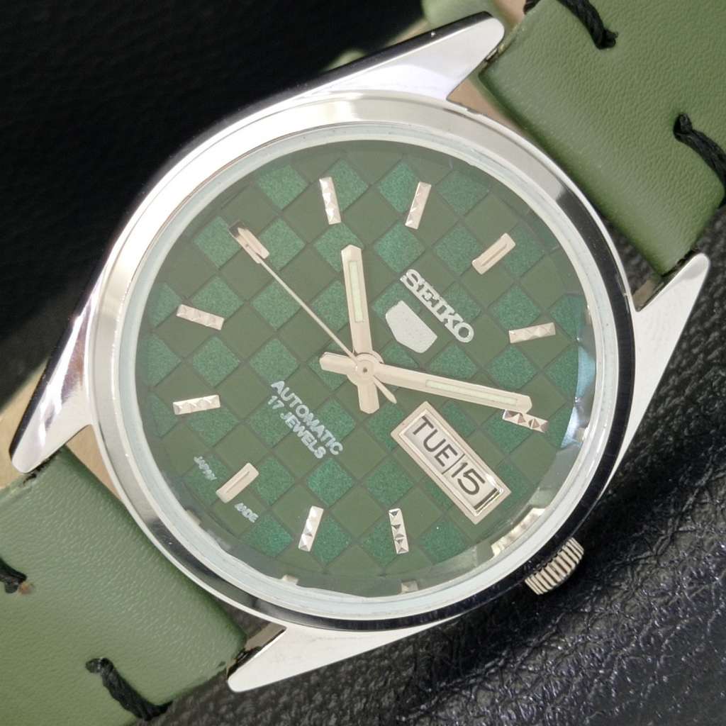 SEIKO 5 AUTOMATIC 6309A REFURBISHED JAPAN MENS GREEN COLOR DIAL WATCH a440326-d