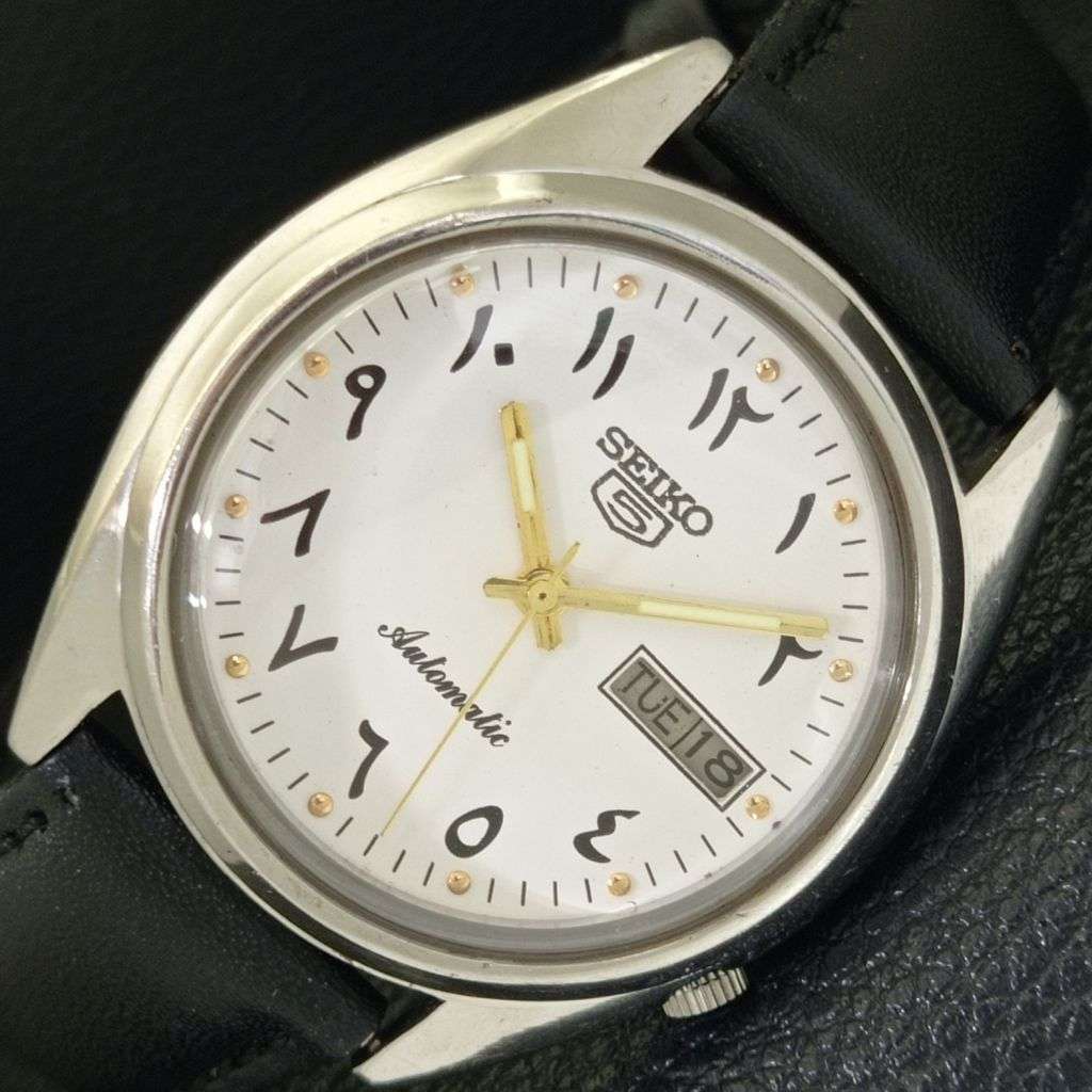 SEIKO 5 AUTOMATIC JAPAN 7009A MENS VINTAGE ARABIC WHITE DIAL WATCH a702675-1