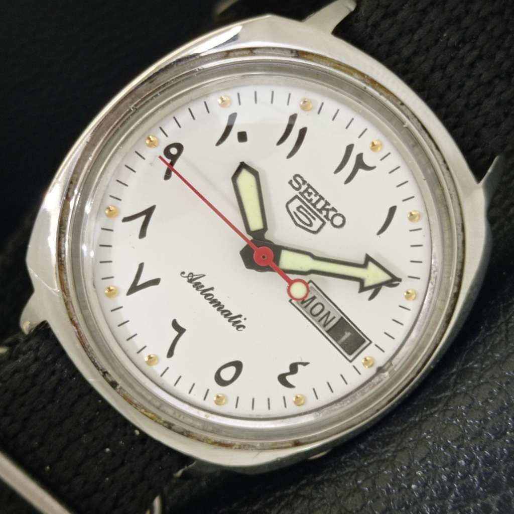 SEIKO 5 AUTOMATIC JAPAN MENS 6119B VINTAGE ARABIC WHITE DIAL WATCH a702448-1