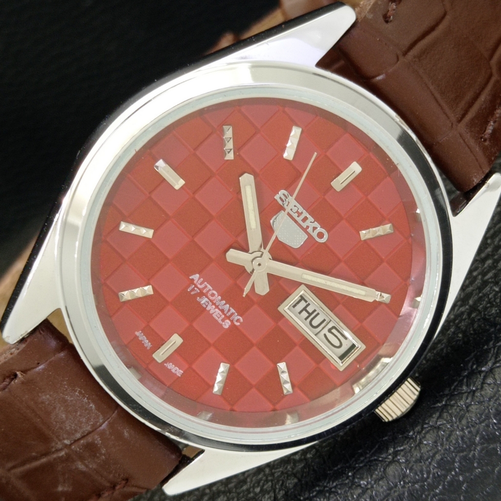 SEIKO 5 AUTOMATIC JAPAN MENS 6309A REFURBISHED RED COLOR DIAL WATCH a440309-1