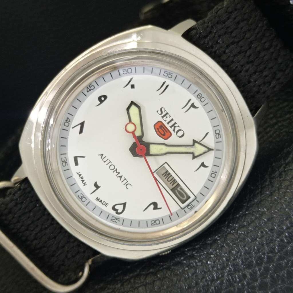 SEIKO 5 AUTOMATIC JAPAN MENS 6619A VINTAGE ARABIC WHITE DIAL WATCH a702443-1