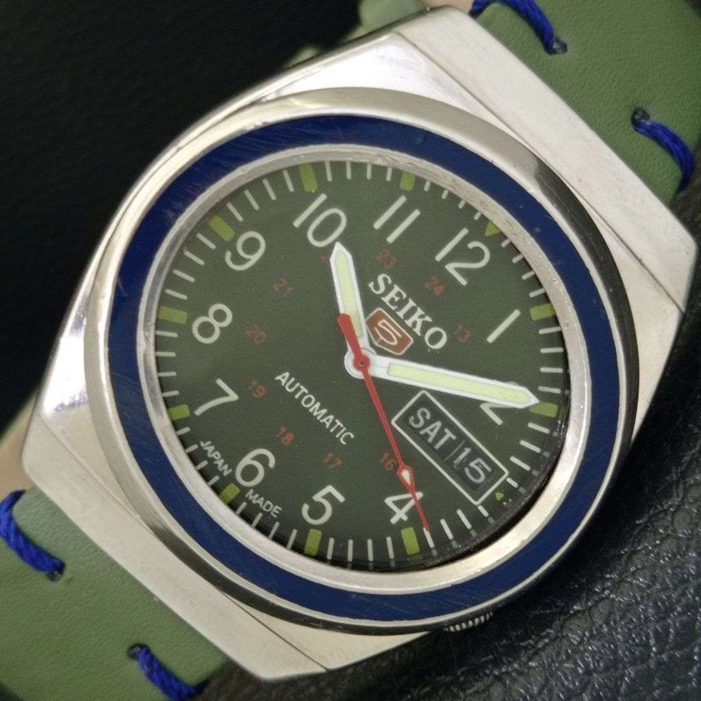 SEIKO 5 AUTOMATIC JAPAN MENS 7009A VINTAGE GREEN COLOR DIAL WATCH a702354-1