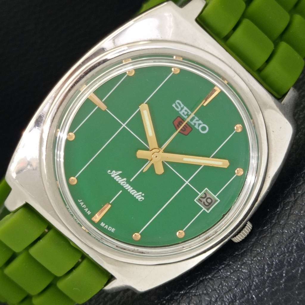 SEIKO 5 AUTOMATIC VINTAGE 7005A JAPAN MENS GREEN COLOR DIAL WATCH a702305-1