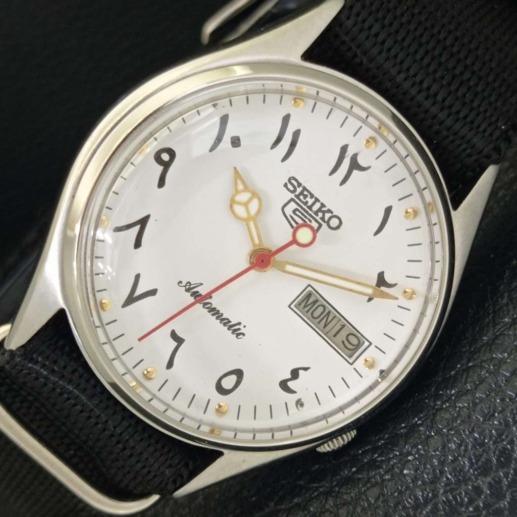 SEIKO 5 AUTOMATIC VINTAGE 7009A JAPAN MENS ARABIC WHITE DIAL WATCH a702447-1