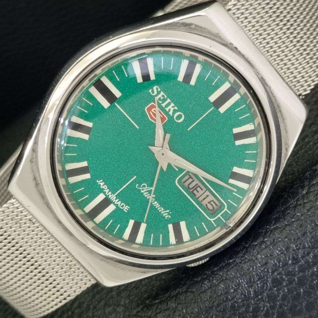 SEIKO 5 AUTOMATIC VINTAGE 7009A JAPAN MENS GREEN COLOR DIAL WATCH a702107-1