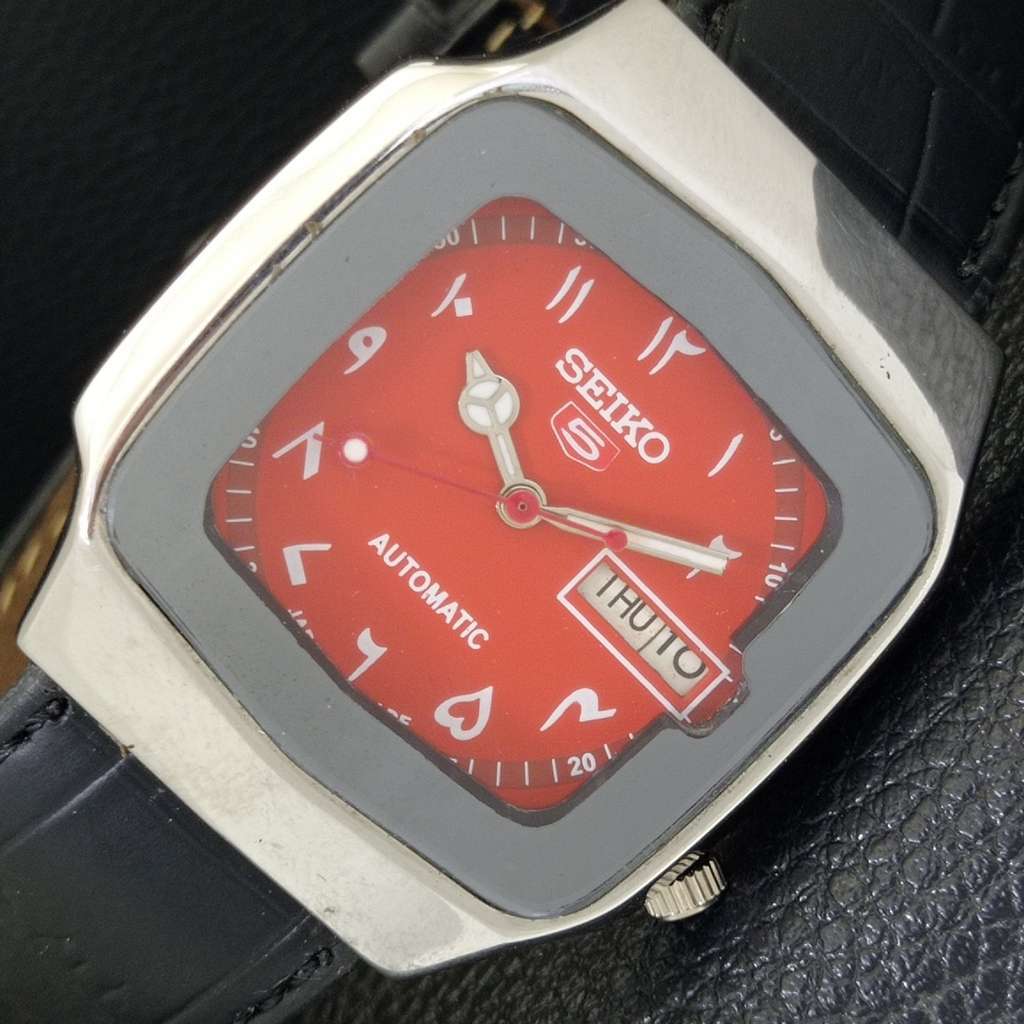 SEIKO 5 AUTOMATIC VINTAGE 7S26A JAPAN MENS ARABIC RED COLOR DIAL WATCH a702458-1