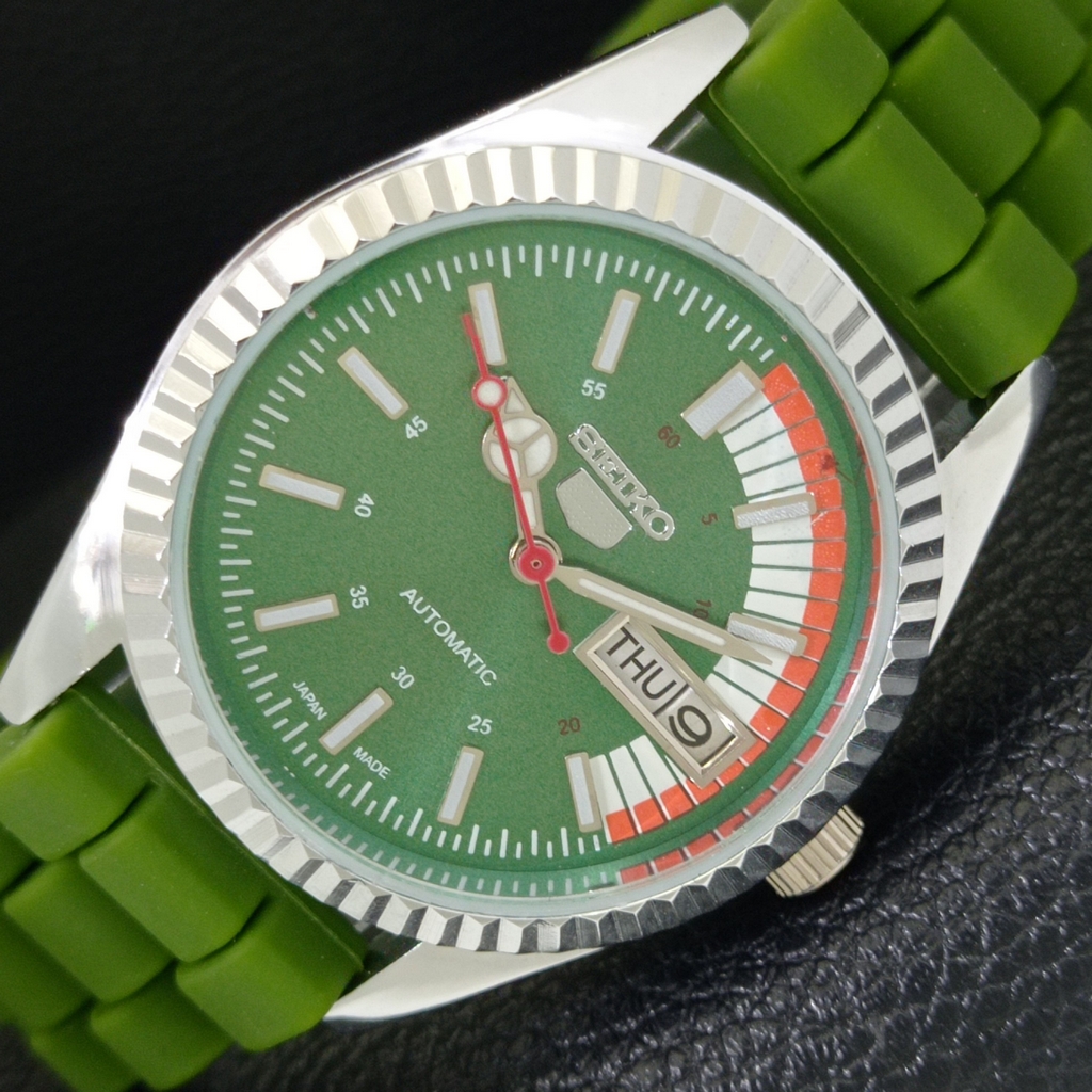 SEIKO 5 AUTOMATIC VINTAGE REFURBISHED 6309A JAPAN MENS GREEN WATCH a440716-1
