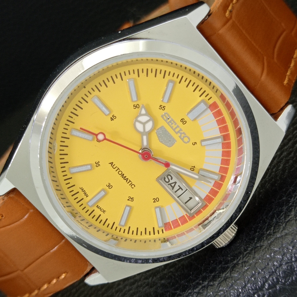SEIKO 5 AUTOMATIC VINTAGE REFURBISHED 6309A JAPAN MENS YELLOW WATCH a440890-1