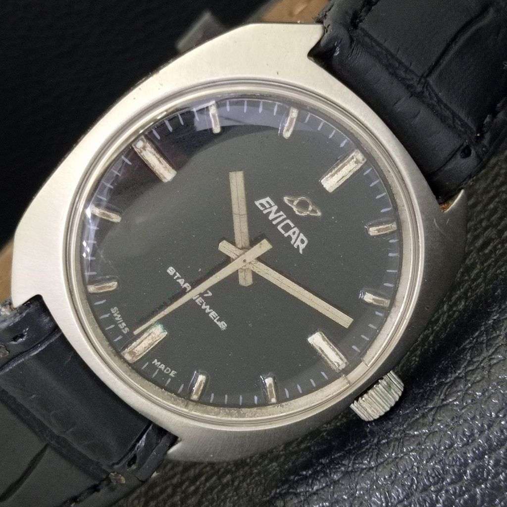 SWISS VINTAGE ENICAR STAR JEWELS 1140 HAND-WINDING MENS BLACK WATCH a703770-1