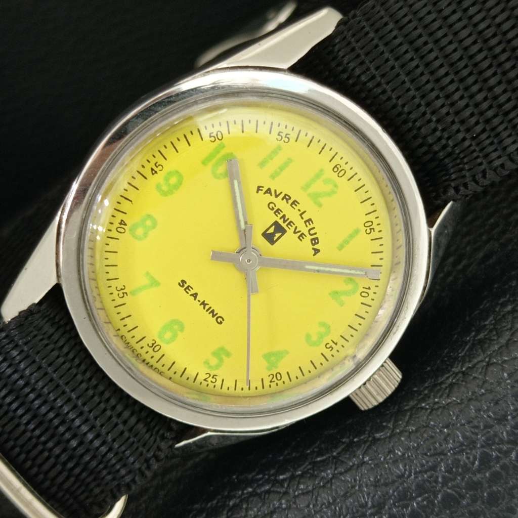 SWISS VINTAGE FAVRE LEUBA 111 SEA KING HAND-WINDING MENS YELLOW WATCH a703008-1